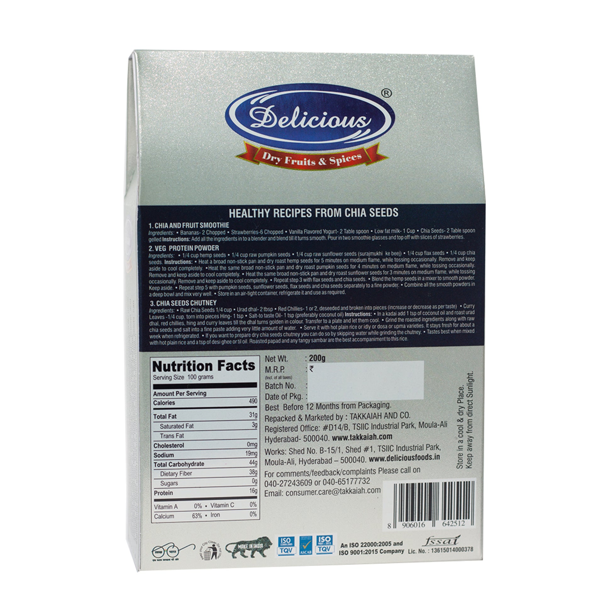 Delicious Chia Seeds are packed with essential nutrients, including Omega-3 fatty acids and fiber. These powerful seeds can improve digestion, aid in weight loss, and lower the risk of heart disease. Add them to smoothies, salads, or baked goods for a nutritious boost to your diet.
