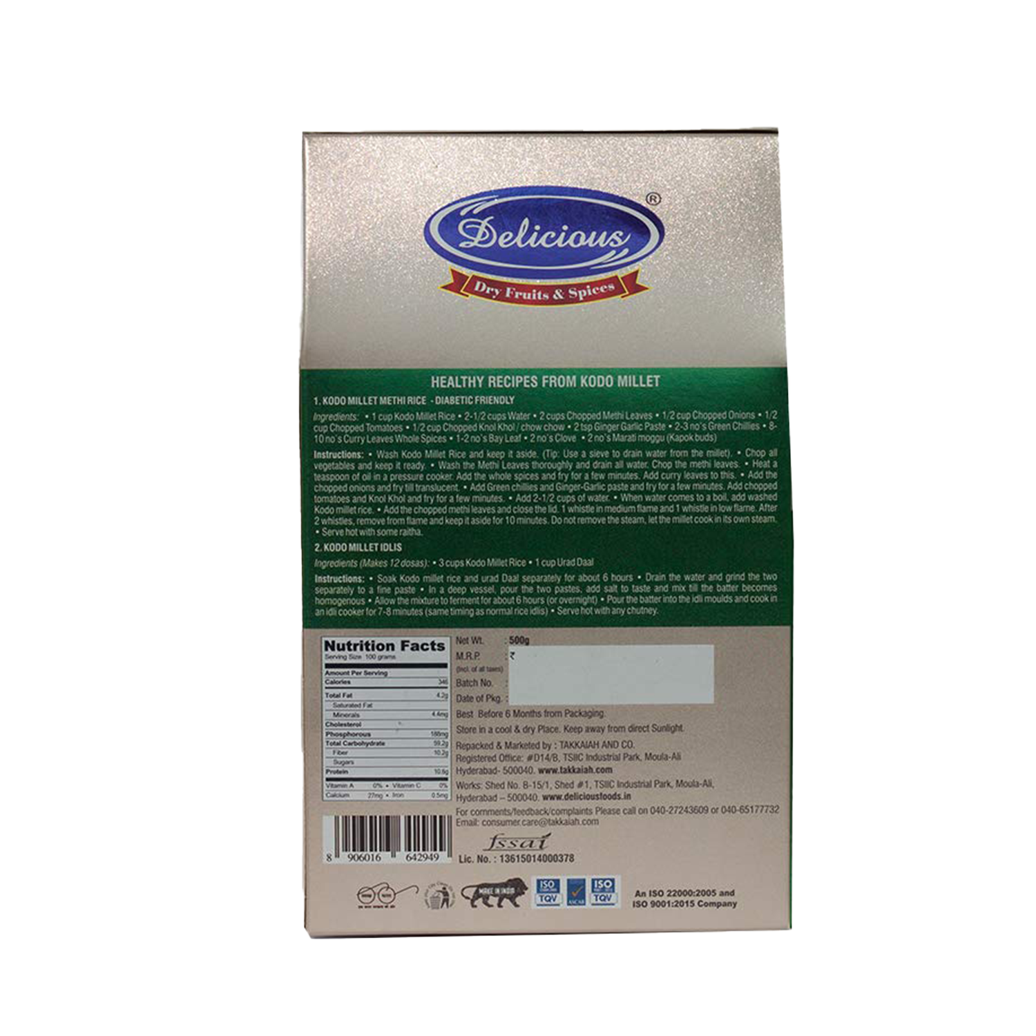 1. Rich in Nutrients : Kodo millet is packed with essential nutrients like iron, calcium, magnesium, and B vitamins, promoting overall health and well-being.