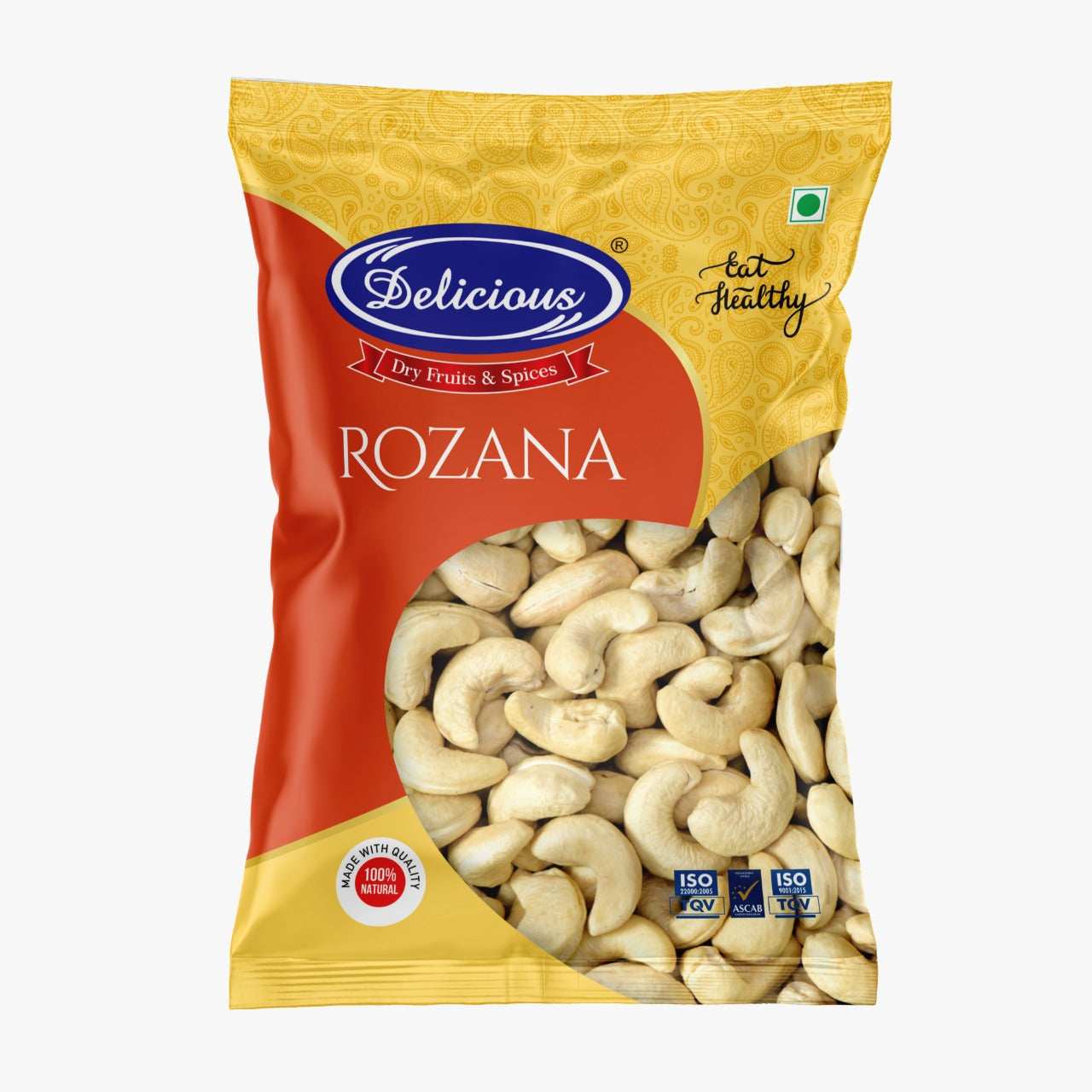 Satisfy your cravings with our Delicious Rozana Cashew Whole Regular (240C) | Kaju. These premium cashews are carefully selected and packed to ensure quality and freshness. Enjoy the creamy texture and rich flavor of these high-quality cashews, perfect for snacking or adding to your favorite dishes.