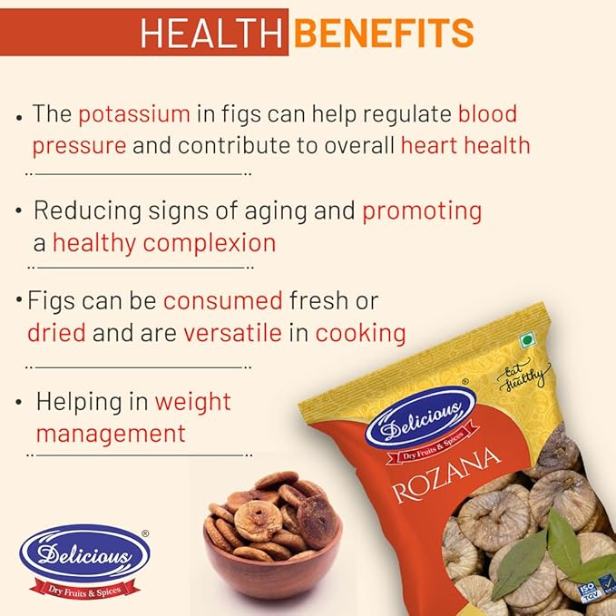 Indulge in the rich and sweet taste of Delicious Rozana Figs, also known as Anjeer. These figs are guaranteed to satisfy your cravings with their succulent texture and unique flavor. Enjoy the many health benefits of figs, including high fiber and potassium content. A delicious and nutritious choice for any snack or recipe.